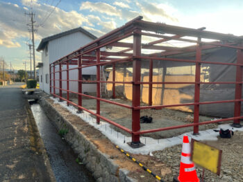 年末に建てた車庫ですが、順調に工事が進んでおります。