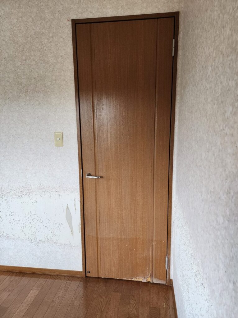ビフォードアの下部は、猫のマーキングにより、表面だけではなく、内部もボロボロになっています(写真左)