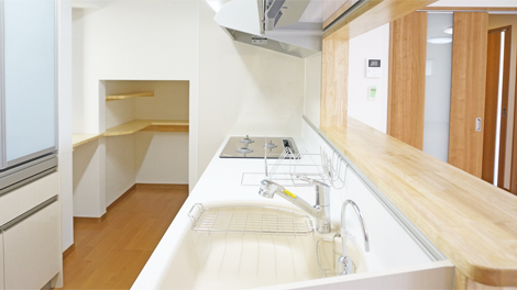 お母様:「家事導線が短く、朝の忙しい時間など効率よく家事が片付きます。収納もいろいろな所に作って頂き、特に食品庫は使い勝手が良いです。」