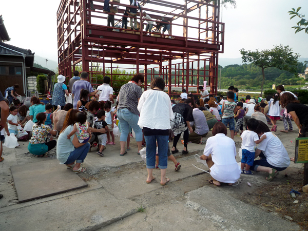 真夏の炎天下に建方を行いました。熱中症対策・安全面は万全の体制です。夕方には、沢山の方がお見えになりとても賑やかな上棟式になりました。