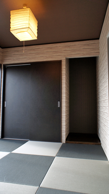 突然のお客様の対応に、家族ののんびりスペースに。4畳半の琉球畳の和室は、和のやすらぎの空間になっております。